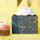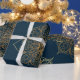 Ett mönster av vackra guld mandalas som upprepas i ett ornatdammmönster. Guld är blankt för att imitera äkta guld-folie. Mandalerna är designade med trångsynta, hand plockade-linor och placerade på en djup marin blå bakgrund.