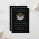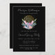 Guld Mandala Rosa Crystals Psychic Spa Andlig Business Event Open House, stor inbjudan till öppning med svart bakgrund. Magisk vattenfärgskonstruktion med guld mandala, rosa kristaller, fjädrar, botaniska blombouquet med grönt löv och fjädrar. Perfekt för din metafysiska, esoteriska, spa, terapeut, energiläkare, klinik och andlig tarot och psykiska verksamhet. Redo för din info.