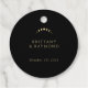 Med Märkrna "Guld Bröllopor Favor" lägger du till en känsloladdad charm till dina favoriter mot elegantens svarta bakgrund. Den gyllene halvmånen måne och stjärnorna, parade med det stilfullt enkla anpassadet initialer av paret, ger en magisk känsla. Måne-faserna är delikat inbyggda i djupet, vilket symboliserar den eviga förbindelsen mellan dig och dina gäster.