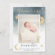 Guld måne stjärnor blå vattenfärgsfoto baby födels meddelande