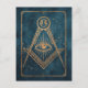 Guld alkemi-symboler flyter över en tryckt turkosblå bakgrund i en guld dubbla-linje ram med krescerande måne och stjärnor längs kant. Måne, planeter, skyttestjärnor, murtand och kompass, öga av härsken som ser öga, trippelsymboler för måne gudinna alkemi inuti en rektangel med guld-tjärt-ram. Ett färglöst mystiskt tillägg till en skrapbok eller journal-sida, inramat som en konstskrift eller fäst på en humörtavla.