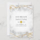 Bröllop spara datum-kort med en marmor struktur med ett guld-geometriskt ram och en marmor bakåt med gyllene influenser.