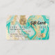 En elegant modern, snyggt skönhet Hair och makeup artist kredit-presentkort för stil med ett modernt typsnitt på en chic guld, turkos marble geode agate och guld metallic foil glam trendig bakgrund. all text är anpassade, lägg till dina social-medier. Med faux guld rand. Lägg till logotyp, monogram och QR-kod.