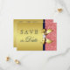 Eleganta, personliga skräddarsydda guldfärgade, korallfärgade, marinblå platta "save the date"-kort med vackra paljetter, blanktryckta band och slingor och snygga diamant-bling-juveler på en glamourös guldfärgad gradientbakgrund. OBS: Dessa är platta tryckta bilder - inga upphöjda delar. Om du behöver hjälp med att anpassa din produkt, vänligen kontakta mig via min butik. Jag hjälper dig gärna. Jag har matchande produkter för bröllop i min butik. Kopiera och klistra in denna länk i din webbläsare för att se hela brölloppskollektionen: