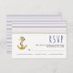 Guld, sjöankare, svarskort för rand nautisk bröllop OSA. Den här eleganten och den moderna utformningen av ett bröllop på stranden har den här eleganten och den moderna utformningen av ett bröllop på strand som har vågrät i marinblått och guld och ett ankare i guld glitter.