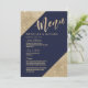 Elegant, chic och glamouröst falskt tryckt guld glitter sekvens hörn och guld skrift på en marinblå bakgrund, bröllopsmottagning meny kort. Denna klassiska och sofistikerade design är perfekt för det klassiska, stilrena och trendiga bröllopsmottagningen. Anpassa med din egen meny på framsidan, tillsammans med dina namn och datum. Anpassa sedan baksidan med din monogram initial. Allt foto tryck design.