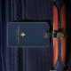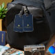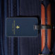 Guld Marinblå Läderpresenter till Destinationbröll Bagagebricka