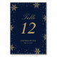 Guld & Marinblå Vinter Snöflingor Bröllopsdusch Bordsnummer