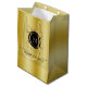 Guld med elegant snabbt guld och svart ram för ett anpassade monogram. Anpassadets födelsedagsfest presentväska.