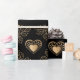 Vackert och elegant gyllene hjärta i ram av löv över svart bakgrund