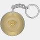 Rund, dubbla-sidig akrylnyckelkedja med en bild på båda sidor av en medallion från guld Medusa på det borrade guld.
