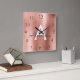 Guld- metalliskt Monogramnamn för rodna rosa ros Fyrkantig Klocka