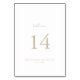 Det minimalistiska bordsnumret bröllop i guld är perfekt för ett modernt bröllop. Den enkla utformningen och utformningen av eleganten har skripttypografin klassisk och finare i guld. Det här är ett bordsnummer från dubblans sida. Lägg till varje bordsnummer som du behöver i din kundvagn individuellt.