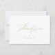 Modern minimalist tack-kort med elegant skrift och hjärtform i guld färg, med valfri text på baksidan, enkelt och trendigt.