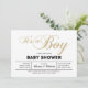 Högtidlighålla en speciell dag för din älskade med den här moderna babyduschinbjudan! Den här designen har typografin snyggt "Det är en pojke" i temat glitter guld struktur och svart färg.