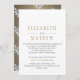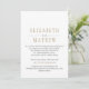 Elegant vit och guld- bröllopinbjudan för antikvitet. Traditionellt formellt uttrycka med elegant modern typografidesign. Antikt guld och kol färgad text på vit med en utskrivaven baksida som presenterar ett antikt guld- modernt abstrakt konstverk för original- blandat massmedia med vattenfärglövmönster, överdrar trycket. Personifiera med din egna text.