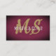 Perfekt för en stilfull, skönare, evenemangsplanerare, insida-dekorator och många andra yrken, det här affärskortet har ditt initialer i stort, guld-skript, med ditt affärs-namn i vit övervikt på det. Bakgrunden är mörk, texturerad burgundi med en "spotlight-effekt" som framhäver mitten. Mycket elegant och professionell tittar! Baksidan är också texturerad, med plats för mer information, möten osv.
