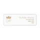 Enkelt, elegant, guld brev i kombination med ren vit bakgrund. Klassisk, sofistikerad returadressetikett, med ett unikt initialer i guld royal krona monogram. Perfektens val för bröllop.
