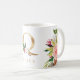 Ett personlig kaffe mugg med ett faux guld brev ’Q’-monogram, med dekorativ blommigt för vattenfärg och bladillustrationer. Anpassa det enkelt med ditt namn eller skapa en unik gåva till dina nära.