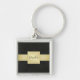 Guld- Monogramfars dag Keychain för svart läder Fyrkantig Silverfärgad Nyckelring