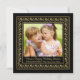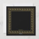 Elegant, formell och magnifik är det bästa sättet att beskriva detta julkort. Det har en svart bakgrund med ett vintage, guldinfattat, blommönster.