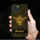 Utformningen har hand plockade-mousserande guld-drottning på en gyllene sexhörsbikupa. Personlig med skripttypografi för elegant guld; skapar den till ett unikt tillbehör för elegant svart guld. Copyrightad av Sukis alla höger reserverade.
