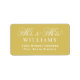Lyxigt guld ger en glamourös bakgrund för elegant vit blomstrande kalligrafi som stavas "Mr. & Mrs." på denna etikett för bröllopsreturadress. Familjenamnet och adressen visas i förfinade små bokstäver för en sofistikerad, överdådig finish. Varje textfält är lätt att anpassa.