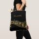 Den här enkla och moderna svarta tote-väskan har musikstaver, en tredubbel klyfta, och musik noter i faux guld, kompletterat med trendig-typsnitt i elegant. Det är idealiskt för professionell musiker, operasångare, choir-ledare, trumpeters, harp studenter och fler som vill bära sin lakan-musik i stil. Dessutom är det en tankeväckande tack för en favoritlärare i skolmusik eller musik i älskare. Anpassa det med din egen namn och använda verktyg för redigering för att justera teckensnittets storlek och placering efter behov. Om du behöver ytterligare anpassningar eller hjälp, kontakta oss gärna via Zazzle.