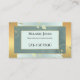 Professionell visitenhet med modern design med virvlande blad på en grön och guldgeometrisk bakgrund. En vacker visitenhet för en sminkör, skönhetsspecialist eller massageterapeut.