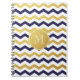 Guld & Navy Blue Chevron Mönster Monogram bärbar d Anteckningsbok