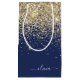 Navyblå och Guld Glitter Skript Monogram Namn Presentpåse. Detta gör den perfekta söt 16 födelsedag, bröllop, bröllopsdusch, årsdag, baby shower eller möhippa presentpåse för någon som älskar glamour lyx och chic stilar.