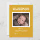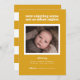 Det här moderna födelsemeddelandet visar att ord "nu njuter av några inte så tysta nätter" med plats för ett enda foto på en färgad med gyllene gulter.