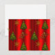 En mycket dekorativ julkort med ett mönster av traditionella julgranar och gyllene snöflingor på en mycket festlig röd bakgrund. Det finns också texten 'Noel' i en mycket dekorativ guldmetall-liknande stil.