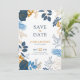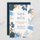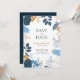 Guld- och blå blommor modern bröllopsram inbjudningar