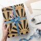 Guld och Black Art Deco Fläkt Flowers Motif Presentpapper