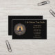 En kvinna på lotus plats i ett ornat ram i vitt guld och gult guld, på svart bakgrund, gör perfekten till en studio eller instruktör för yoga. Baksidan är svart, med plats för avtalade tider, kundbelöningar osv.