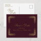 Ett anpassningsbart elegant guld- och burgunderfärgat utsirat spets-spara-datum postkort.