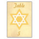Ett utmärkt bord-platskort som helt enkelt är fantastisk, den här designen har en gyllene bakgrund som visar ditt bordsnumren guld-teckensnitt. En guld och en vit stjärna av David är mitt på kortet bord. Samma design på framsidan och svart. Köp din idag! Guld, bakgrund: Michel Müller Star of David: Sonya DeHart Design http://www.sonyadehartdesign.com | http://www.sonyadehartdesign.etsy.com