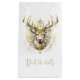 Ett mycket dekorerat hjort i guld och glitterdiamant mönster. Ge dina gåvor i elegans denna julsäsong. Texten säger "Deka Halls" i guld