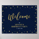 Den här snyggten är ett välkomsttecken som innehåller guld texturerad konfektion och modern typografi. Bakgrunden färg är marinblå, men du kan enkelt anpassa den. Detta tecken är perfekt för en chic och en modern födelsedagsfest, bröllop-årsdagen eller pension party. Matchande inbjudnings- och party-tillbehör finns i min butik BaraBomDesign.