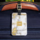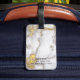 Smart och stilfulla bagagemärkre i guld och grått marmorerar. Personifiera med din egna initialer och namn och adress.