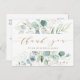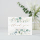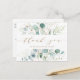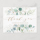 Detta vykort för affär tack innehåller målad akvarell eukalyptus, botanisk grön och guld glitter blad med guldskrift.