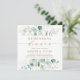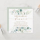 Denna inbjudan till repetition middagstorg har målad akvarell eukalyptus, gröna och gyllene glitterblad med guldbokstäver.