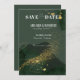 Meddela din speciella dag i sofistikerad stil med detta lyxiga guld- och gröntemade Spara datum-kort. Med rika smaragdtoner i par med skimrande guldbeläggningar utstrålar denna design tidlös elegans och exklusiv charm. Perfekt för moderna par som söker ett förfinat men ändå stilrent sätt att dela med sig av sitt bröllopsdatum. Helt anpassningsbart med din egen text och detaljer.