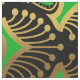 Guld och grönt Art Deco mönster över en svart bakgrund.
