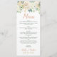 Menyn för menykortsdesign i bröllop innehåller skript med anpassningsbarnas ordalydelse och ett monogram som kan vara helt personlig och som ramas av en vattenfärgsdesign för blommigt med färgat ro, ranunculus-blommor och löv. Färg omfattar neutralter av vitt, kräm, rosa, guld, grönt och grått/mjukt svart mörk. Perfekt för ett vår- eller sommarevenemang.