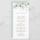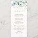 Den här bröllop-menyn innehåller färgade vattenfärgseukalyptus, botaniska gröntar och guld glitter löv med guld-skript.