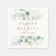 Den här bröllop-napkin har färgade eucalyptus, botanisk grönt och guld glitter löv med guld-skript.