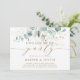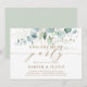 Den här inbjudan till förlovningsfest innehåller färgade vattenfärger eukalyptus, botaniska gröntar och guld glitter löv med guld-skript.