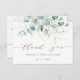 Tack vare det här kortet finns färgade vattenfärgseukalyptus, botanisk grönt och guld glitter löv med mycket skript på baksidan.